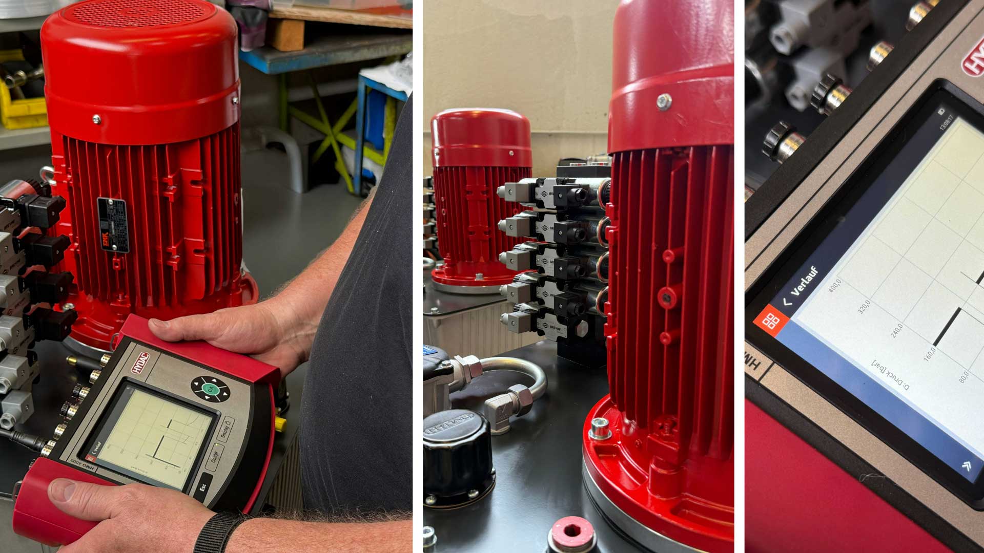 - Zustandsanalyse in Echtzeit – Messung aller relevanten Hydraulikparameter (Druck, Temperatur, Volumenstrom)
